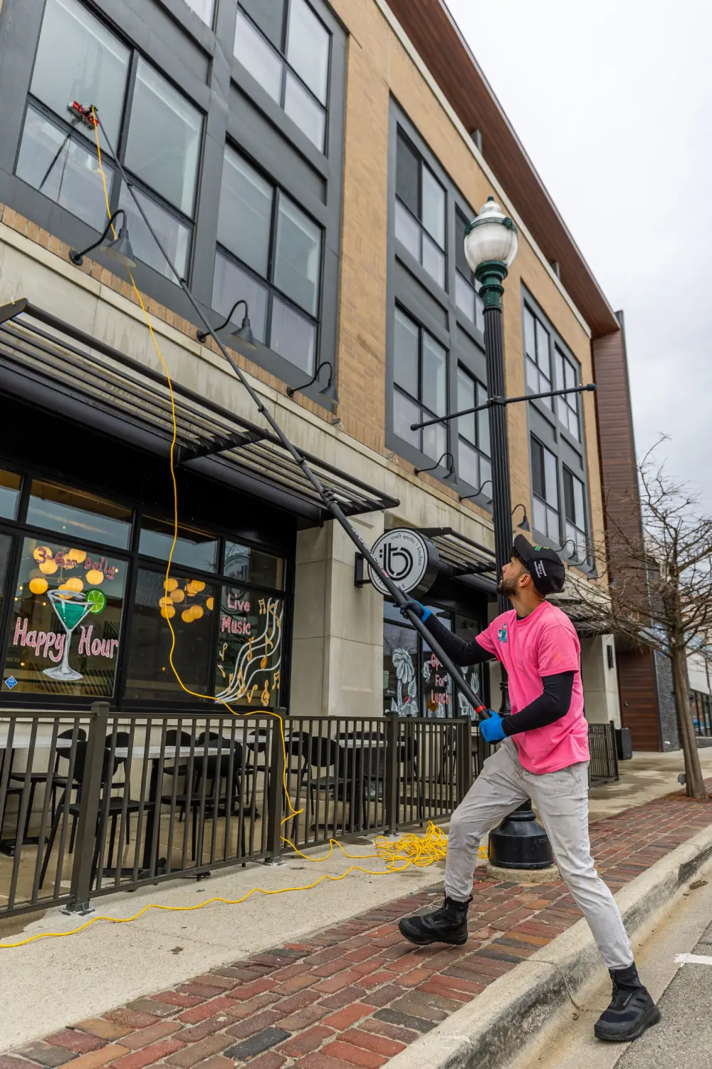 Access and ladder work can increase complexity, especially on larger commercial properties or campuses. We also adjust our approach for older or delicate windows. We do not use razor blades, we scrub lightly, and we handle windows carefully and methodically.